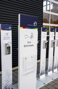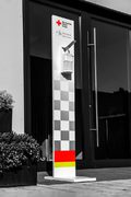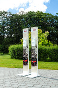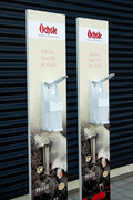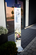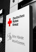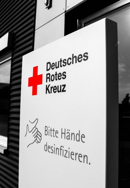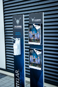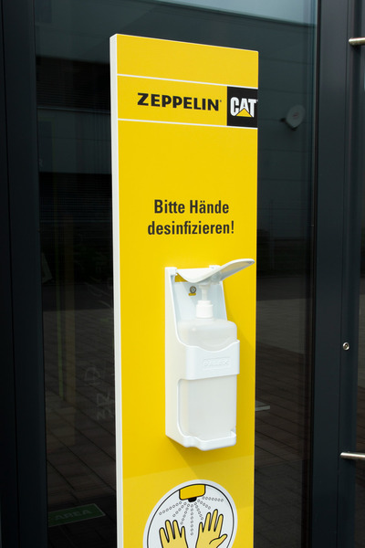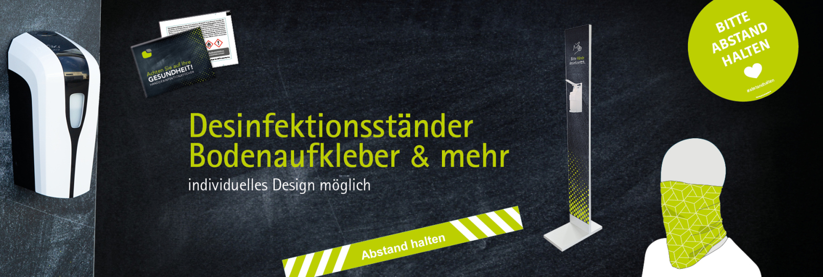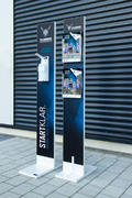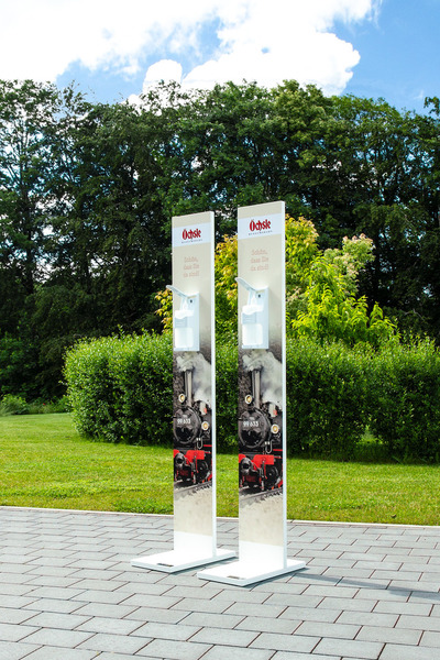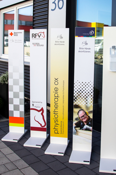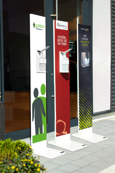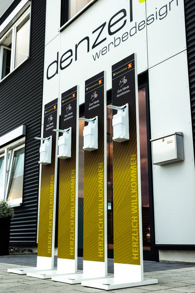 Roll-Ups oder Desinfektionsständer an mit denen Sie den
